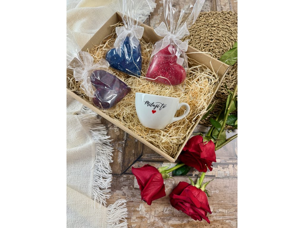 Dárková sada Miluji Tě + modré srdíčko s lískovkou